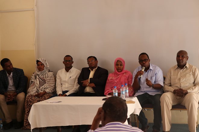 Aqoon-isweydaarsiga maanta furmay waa wejigii labaad, ayada oo wejigii koowaad ee aqoon-isweydaarsigaasi la qabtay bishii Sebtember sanadkii 2016. Furitaankii aqoon-isweydaarsiga waxaa ka hadlay madax kala duwan oo uu ka mid yahay wasiir-ku-xigeeenka wasaaradda qorsheynta iyo xiriirka caalamiga ah Prof C/laahi Sh. Cali, Xoghayaha guud Gobolka Banaadir Amiin Sh. Cilmi, guddoomiyaha gobolka Banaadir Prof Cabdirisaaq Axmed Dalmar, Madaxa xarunta biyaha iyo deegaanka Somaaliyeed, Dr Cabdullaahi Cilmi (Asad), iyo madaxa ururka OIC ee Muqdisho, Maxamed Iidle. Madaxda kale ee ka hadashay furitaanka waxaa ka mid ahaa Eng Cumar Shuuriye oo ka socday Wasaaradda Tamarta iyo Biyaha, Marwo Caasha Siyaad, madaxa ururka haweenka ee ka qeybqaadashada hogaaminta, oo ka hadashay haweenka, carruurta iyo biyaha.