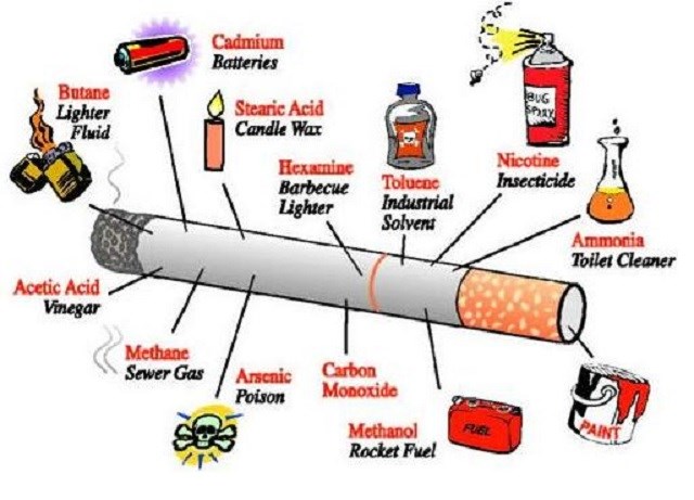 Prof. Dufle ayaa tilmaamay in sigaarka laga helo in ka badan 40 maaddo oo sun kiimiko ah kuwaasoo dhalin kara cudurka kansarka. Waxaana ka mid ah ayuu yiri maaddada (Tar, Arsenic, benzene, formaldehyde, carbon monoxide & amooniyo) waxaa kaloo ku jira ayuu yiri dhaqtarku maadada Nicotin-ka oo sababa in la qabatimo sigaarka jir ahaan iyo maskax ahaan.