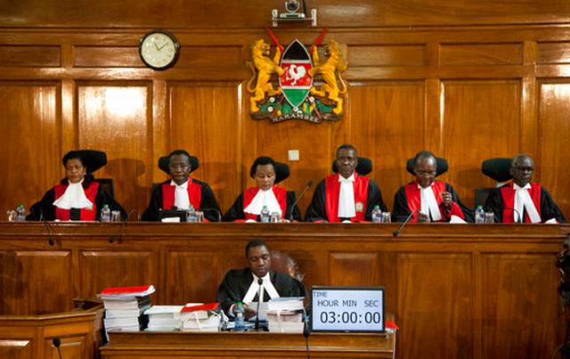 Maxkamadda sare oo ka kooban toddobo xaakim ayaa ku kala qaybsantay go'aanka iyada oo afar xaakim ay isku raaceen go'aanka lagu baabi'iyay doorashadii Kenyatta halka labo xaakim ay ka hor yimaadeen. Maxamed Ibraahim, ayaan isagu ka qaybgelin go'aanka maxkamadda arrimo caafimaad awgood.