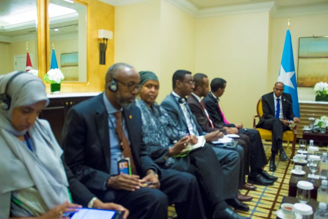 Arbaco, September, 20, 2017 (HOL) - Raysulwasaaraha Soomaaliya Mudane Xassan Cali Khayre iyo wafdigiisa ayaa maanta kulamo gooni gooni ah la yeeshay madaxda wadamo dhoowr ah oo ay ka mid yihiim Madaxweynaha dalka Turkey Recep Tayyip Ordogan, Madaxda Midowga Yurub, Dowlada Norwey, iyo Madaxkale oo aad u baddan.