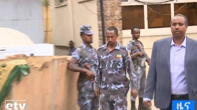 ayaa ka soo muuqday warbaahinta isaga oo ay dhinac-yada ka socdaan ciidamo ka
