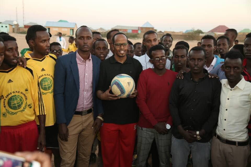 Arbaco, Janaayo, 17, 2018 (HOL)- Gudoomiyaha gobalka Banaadir ahna duqa Muqdisho Thaabit Cabdi Maxamed oo ka mid ah wafuudda ku sugan magaaladda Dhuusamareeb ayaa galabta lagu sharfay inuu furo ciyaar kubadda cagta ah oo u dhaxeysay labadda magaalo ee Guriceel iyo Dhuusamareeb.