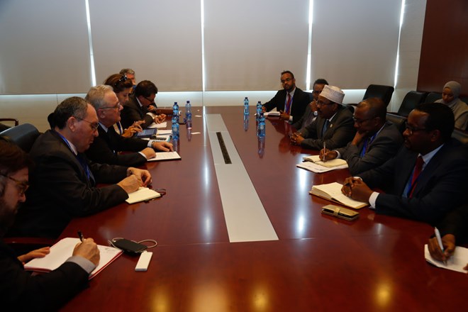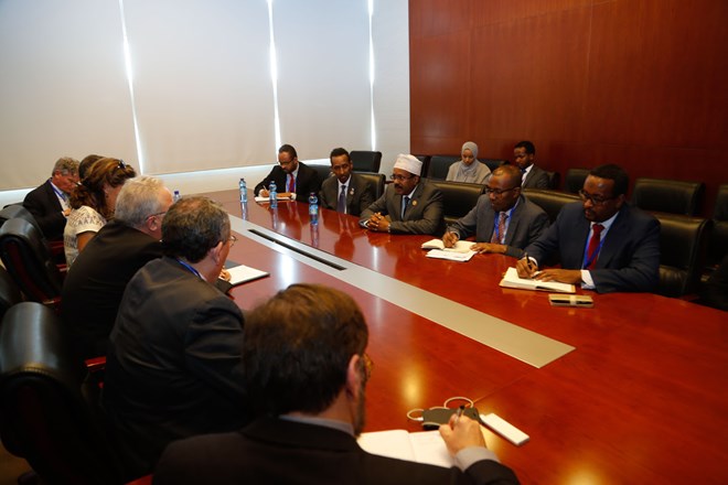 Isniin, Janaayo, 29, 2018 (HOL) – Madaxweynaha Soomaaliya Maxamed Cabdullaahi Farmaajo oo ku guda jira kulamada gaar gaarka ah ee uu la qaadanayo Madaxda Afrika iyo wakiilada Ururada Caalamiga ah ee ka qeyb galaya Shirka Madaxda dalalka Midowga Afrika, ayaa la kulmay Wafdi ka socday Midowga Yurub.