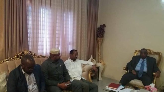 Axad, July, 15, 2018 (HOL)-Agaasimaha guud ee Wasaaradda arrimaha gudaha dowlad gobolleedka Hirshabeelle Maxamed Caruush Diiroow oo magaalada Garoowe kulan kula qaatay mas’uuliyiinta maamul gobolledka Puntland gaar ahaan madaxweyne Cabdi Wali Maxamed Cali Gaas.