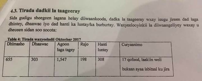 Guddiga Gurmad Qaran oo muddooyinkii dambe ku hawlanaa caawinta dadkii ay masiibooyinkaasi saameysay, ayaa xalay soo bandhigay jadwal muujinaya sida dadka ay usaameysay qaraxyadii Zoobe iyo weerarkii Hotel Naasa Hablood.