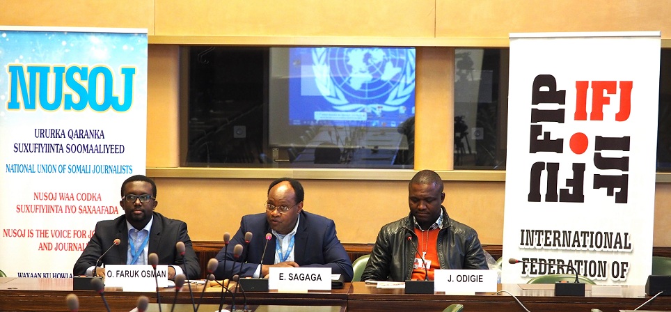 Ernest Sagaga, madaxa Xuquuqul Insaanka ee ururka caalamiga ah ee IFJ ayaa sheegay in Soomaaliya ay tahay meel si aan kala go’ laheyn loogu dhibaateeyo suxufiyiinta. “Sidaan ugu ol-oleyneynay difaacitaanka amniga suxufiyiinta oo aan u laheyn haddii dowlad la helo dhibka ay ku jiraan suxufiyiinta waa laga baxaya ayaa waxaa ayaan daro noqotay in dadkii dowladda ku jiray ay iyaga hor kacayaan dhibaatada lagu hayo suxufiyiinta iyo ururkooda” ayuu yiri Sagaga.