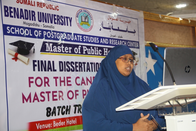 Sabti, November, 10, 2018 (HOL) – Dufcadihii 3aad, 4aad iyo 5aad ayaa dhameystay Waxbarashada taqasuska Caafimaadka Bulshada (Master of Puplic Health) ee Jaamacadda Benadir, iyadoo Munaasabad arrintaas la xiriirta lagu qabtay magaalada Muqdisho.
