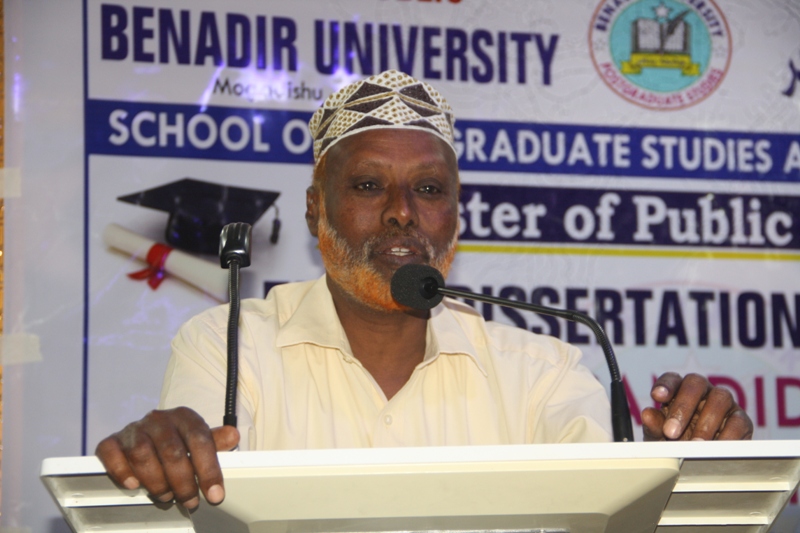 Dr. Tahliil Cabdi Afrax oo ah xiriiriyaha qeybta waxbarashada ee Master of Postgradute-ka Jaamacada Banaadir oo ka hadlay munaasabadan ayaa u hambalyeeyey ardayda ka qelin jebisay qeybta waxbarashada heerka labaad.