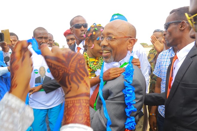 Sabti, November, 10, 2018 (HOL) - Musharraxa xilka Madaxwaynaha Puntland ee doorashada 2019 ,Cabdirisaaq Cabdullaahi Jaamac (Janagale) ayaa maanta soo gaaray magaalada Gaalkacyo ee xarunta gobolka Mudug, halkaas oo si ballaaran loogu soo dhaweeyay.