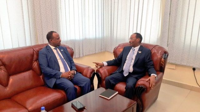 Sabti, November, 10, 2018 (HOL) - Wasiirka maaliyadda xukuumadda federaalka ah ee Soomaaliya,Cabdiraxmaan Ducaale Bayle ayaa maanta xafiiskiisa kulan gaar ah kula qaatay wasiirka Gaashandhigga Soomaaliya Xassan Cali Maxamed, kulanka oo diiradda lagu saaray qorshayaal muhiim u ah horumarinta Ciidanka Xoogga dalka.