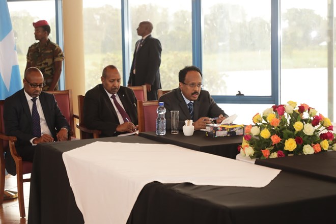 Madaxweyne Farmaajo ayaa dalka dib ugu soo laabtay kaddib markii uu kaga soo qeyb galay magaalada Bahra Daar ee dalka Itoobiya shir ku saabsan xoojinta heshiiska iskaashiga saddex geesoodka ah ee dalalka Soomaaliya, Itoobiya iyo Ereteriya.
