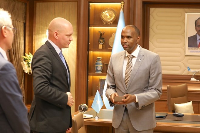 Isniin, November, 19, 2018 (HOL)– Ra’iisul wasaaraha xukuumadda federaalka Soomaaliya, Xasan Cali Khayre ayaa maanta xafiiskiisa ku qaabilay wasiir ku-xigeenka arrimaha dibadda Finland, Samuli Virtanen oo Muqdisho soo gaaray.