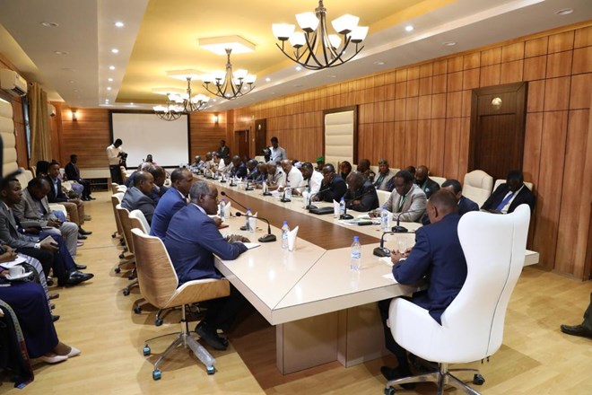 newsinsideSafiirka Djbouti u fadhiya dalka Ethiopia, Mohamed Idriss Farah, ahna guddoomiyaha xilligaan ee golaha amniga iyo nabadgelyada Midawga Afrika oo hoggaaminaya xubnaha wadfiga ayaa ra’iisul wasaaaraha uga mahadceliyay soo dhawaynta ballaaran ee loo dalka loogu sameeyay, waxa uuna ku ammaanay hoggaanka dalka horumarka muuqda ee laga gaaray sugidda amniga iyo hanaanka siyaasadda dalka.