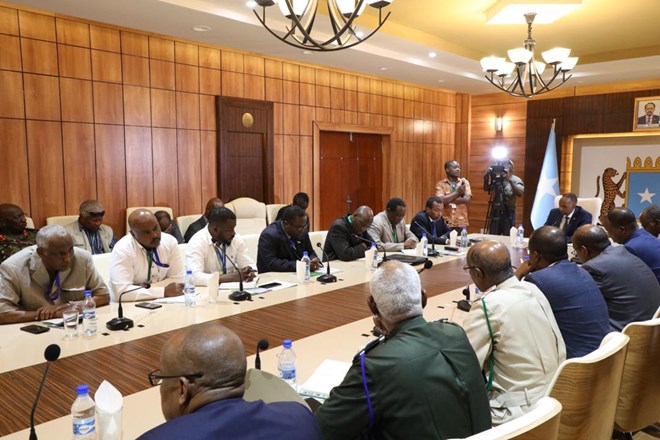 Ra’iisul Wasaare Xasan Cali Khayre iyo xubnaha wafdiga ayaa ka wada hadlay horumarrada laga gaaray qorshaha mas’uuliyadda amniga dalka ay kula wareegayso dawladda federaalka Soomaaliya, tababarka iyo qalabaynta ciidanka Soomaaliya si qorshaha kala guurka loogu dhaqan geliyo hannaankii horay loogu qorsheeyay.