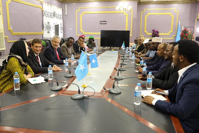 Isniin, October, 29, 2018 (HOL) -Madaxweynaha Jubbaland Mudane Axmed Max’ed Islaam iyo xubno ka tirsan golihiisa wasiirada ayaa aqalka martida Jubbaland ee magaalada Kismaayo kulan kula qaatay wafdi ay hogaaminayeen Wakiilka Qaramada Midoobay u qaabilsan Soomaaliya Nicholas Haysom iyo Wakiilka Midowga Afrika ee Soomaaliya Danjire Francisco Madeira.