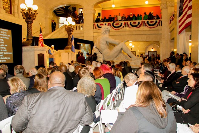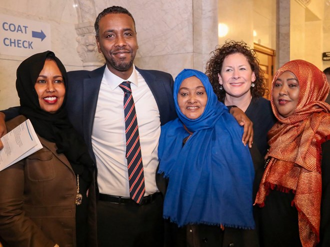 Talaado, Janaayo, 09, 2018 (HOL) –Maalintii shalay oo ku aadanayad Isniin Janaayo 08, 2018, ayaa lagu qabtay xarunta laga xukumo magaalada Minneapolis xaflada munaasabadda dhaarinta iyo caleema saarka madaxda magaaladan hogaamin doonta affarta sano ee inagu soo aadan, kuwaas oo la doortay bishii bilawgii bishii November ee sanadkii ina dhaafay. Xafladdaan ayaa ahayd mid xiisa badan kana duwanayd xafladahii hore.