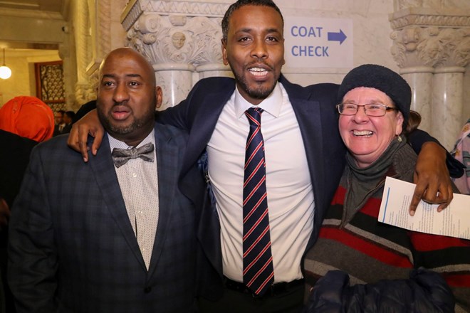 Magaalada Minneapolis waxa ay ka koobantahay 13 degmo, Isniintii shalayna waxaa si wadar ah loo dhaariayay duqa magaalada Minneapolis loo doortay ee Jakab Frey iyo sidoo kale sedex iyo toban ka gudoomiye kuwaas oo laga soo doortay 13-ka degmo ee magaaladu ay ka koobantahay. Golahaan waxaa ka mid noqday sanadkaan saddex shakhsi oo ka soo jeeda qawmiyada dadka madaw, meesha kalkii hore Abdi Warsame kaliya uu kaga jiray muwaadiniinta madow.