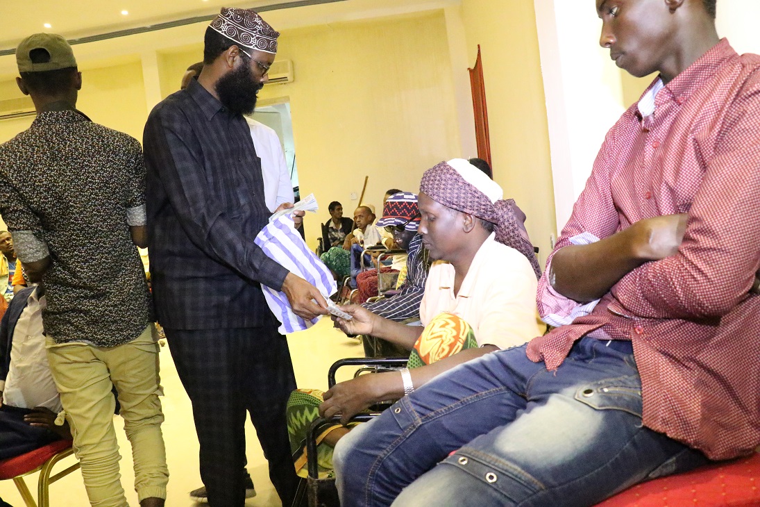 Arbaco, May, 23, 2018 (HOL) – Hay’adda Hormuud Foundation oo ah Qeybta Sama Falka iyo Gargaarka uqaabilsan Shirkadda Hormuud Telecom ayaa 500 oo Qof oo Naafo ah oo ka kala yimid Degmooyinka Gobolka Banaadir iyo Deegaannada ku hareereysan u qeybisay lacag Cash ah, iyadoo qof kasta la guddoonsiiyey lacag dhan $100 Dollar.