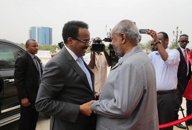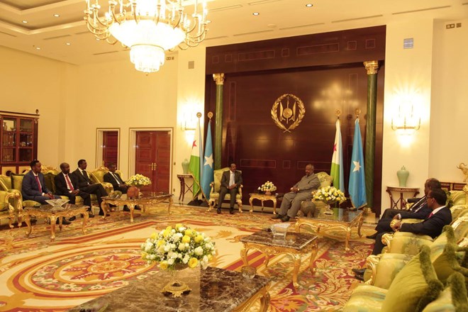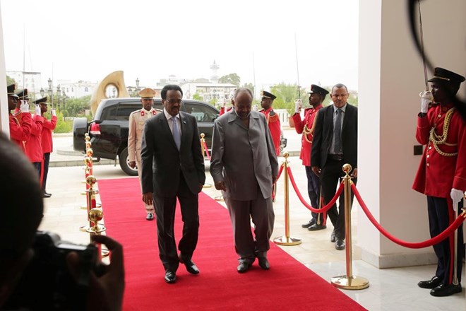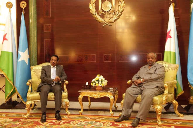 Isniin, Augusto, 19, 2019 (HOL)-Madaxweynaha Soomaaliya Maxamed Cabdullaahi Farmaajo oo booqasho shaqo ku jooga dalka Jabuuti ayaa maanta wada hadallo wax ku ool ah la yeeshay dhiggiisa Madaxweyne Ismaaciil Cumar Geelle.