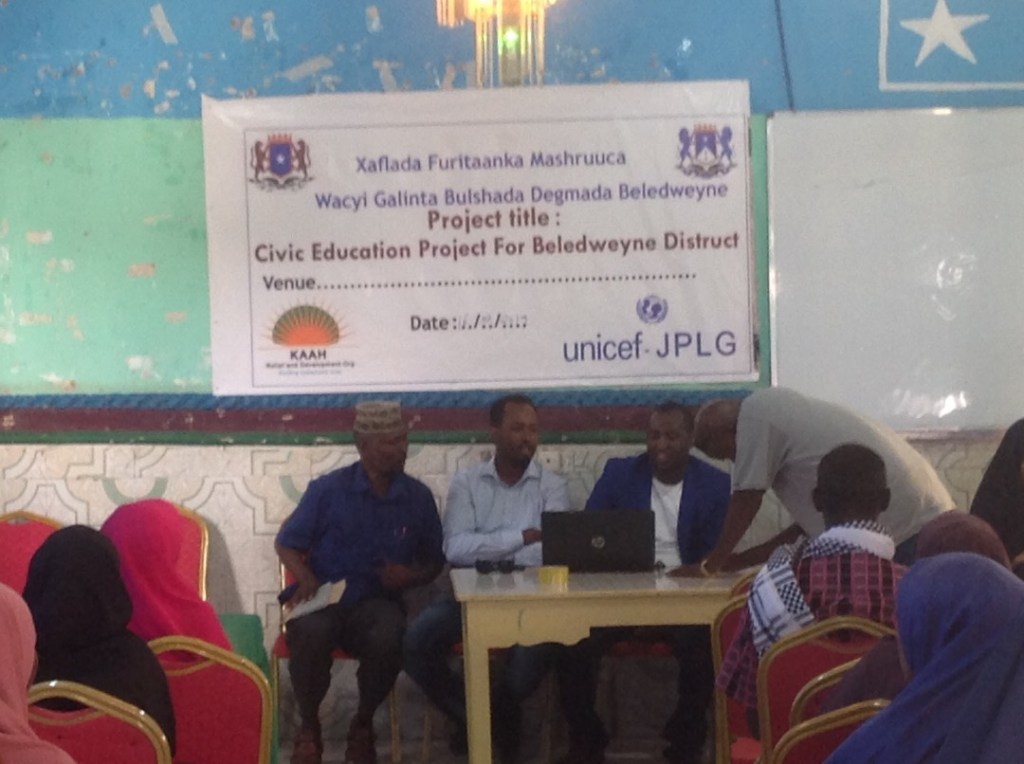 Duqa Degmada Beledweyne ayaa soo dhaweeyay mashruucan oo ay soo qabanqaabisay Hay’ada UNICEF -JPLG, islamarkaana ay ka fulineyso gobolka shirkadda Kaah.