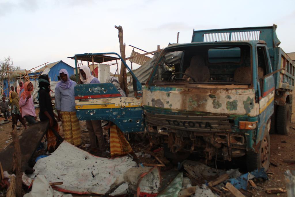 Sawirro laga soo qaaday Goobta duqeynta lala bartilmaameedsaday ayaa muujinayay burburka Guryo ay lahaayeen dad Shacab ah iyo goobo Ganacsi.