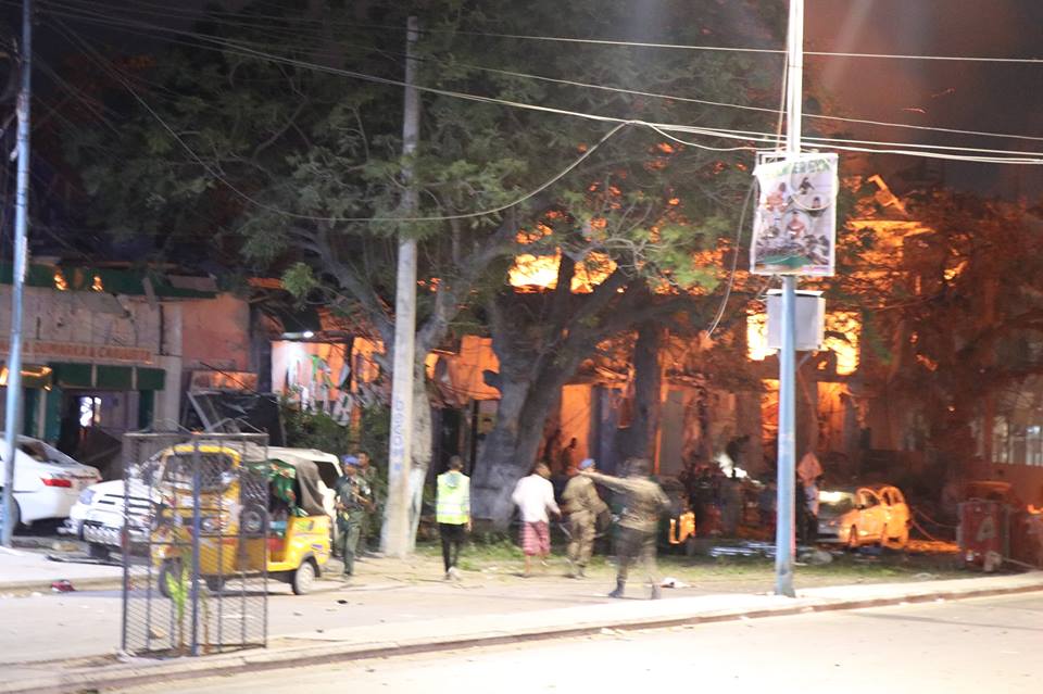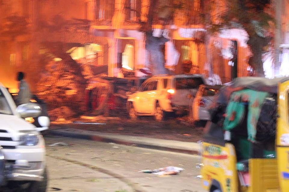 Dhinaca kale waxaa jira dab xoog leh oo qabsaday dhamaanba dhimayaashii ka agdhawaa hotelka.Wali waxa soconaya gurmad xoog leh oo ay sameynayaan gaadiidka gurmad deg dega ah, iyadoo laga cabsi qabo khasaaruhu intaa ku sii bato, madaama ay jiraan dhimayaal ku dumay qaraxa oo laga yaabo in ay ku hoos jiraan dad meyd ah.