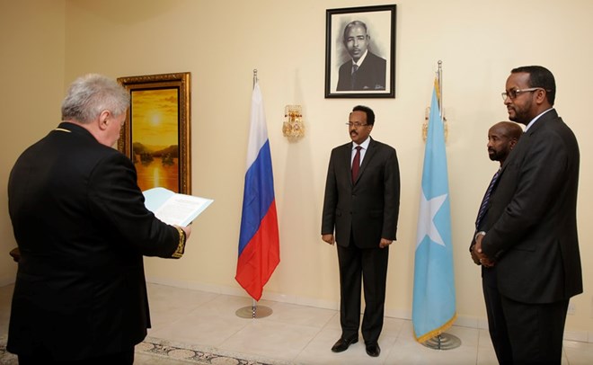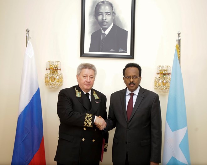 Danjire Mikhail Golovanov ayaa Dowladda Federaalka Soomaaliya ku bogaadiyay horumarka iyo dib u habaynta dhanka amniga iyo dhaqaalaha isaga oo Madaxweynaha kala hadlay qaabkii ay Dowladda Ruushku gacan uga geysan lahayd tababarka shaqaalaha rayidka ah iyo laamaha amniga.