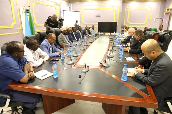 Isniin, July, 15, 2019 (HOL)- Madaxweynaha dowlad-gobolleedka Jubbaland ,Axmed Maxamed Islaam ayaa maanta Aqalka martida ee magaalada Kismaayo ku qaabilay wakiilka gaarka ah ee Qaramada Midoobay u qaabilsan Soomaaliya James Swan iyo xubno kale oo kasocday hay'adda Qaramada Midoobay.