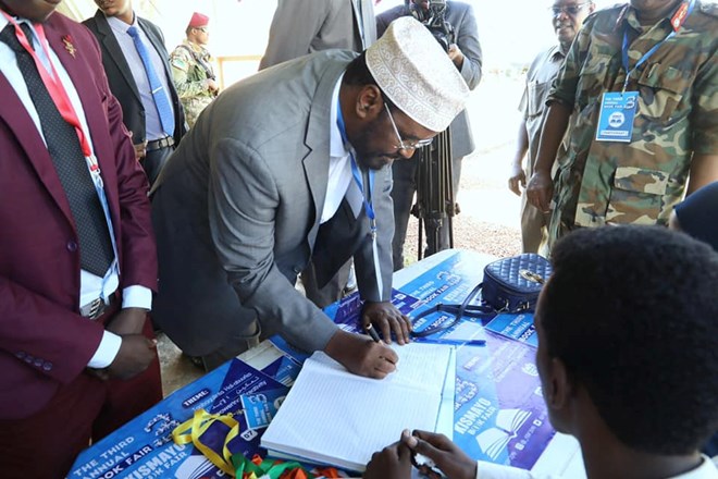 Axad, July, 07, (HOL)– Madaxweynaha Jubbaland , Axmed Maxamed Islaam ayaa maanta ka qaybgalay maalinka koobaad ee furitaanka Bandhiga Carwada Buugaagta ee Kismaayo.