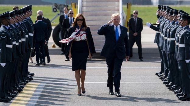 newsinsideMadaxweyne Trump iyo xaaskiisa Malania Trump ayaa la kulmay boqorada Ingiriiska iyagoo booqday qasriga Buckingham Palace. Trump iyo xaaskiisa ayaa markii ay ka soo degeen garoonka diyaaradaha waxaa si toos ah ay u tageen guriga uu ka degen yahay safiirka Maraykanka magaalada London.