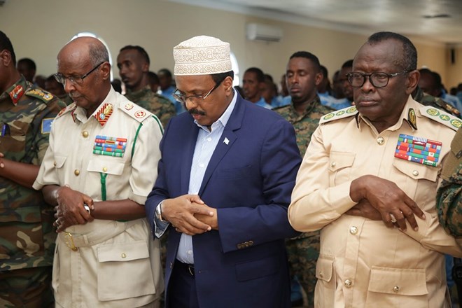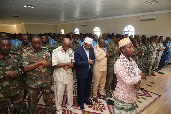 Talaado, June, 04, 2019 (HOL)– Madaxweynaha Soomaaliya ,Maxamed Cabdullaahi Farmaajo ayaa salaadda ciidda kula tukaday cutubyo ka tirsan Ciidanka Xoogga dalka Masjidka Dugsiga Tababarka ee Jeneraal Goordan.