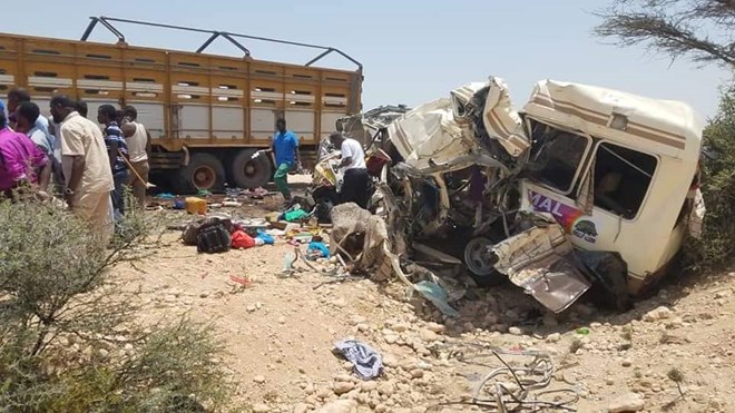 Talaado, May 07, 2019 (HOL)- Illaa Todoba qof ayaa geeriyooday, afar qofna waa dhaawac ka dib markii laba gaadhi isku dhaceen inta u dhaxaysa Lafa-ruug iyo xamaas ee gobolka saaxil.