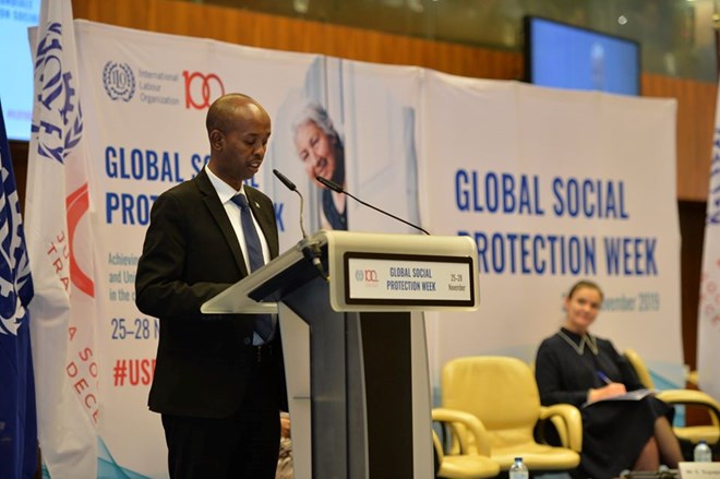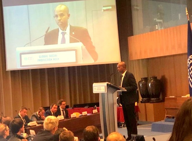 Arbaco, November, 27, 2019 (HOL)- Wasiirka Shaqada iyo Arrimaha Bulshada Xukuumadda Federaalka ah ee Soomaaliya, Mudane Sadiiq Xirsi Warfaa ayaa khudbad ka jeediyay shirka looga hadlayo arrimaha daryeelka bulshada oo ay soo qaban qaabisay hay'adda shaqaalaha adduunka ee ILO, kaaso ka socda magaalada Geneva ee dalka Switzerland.
