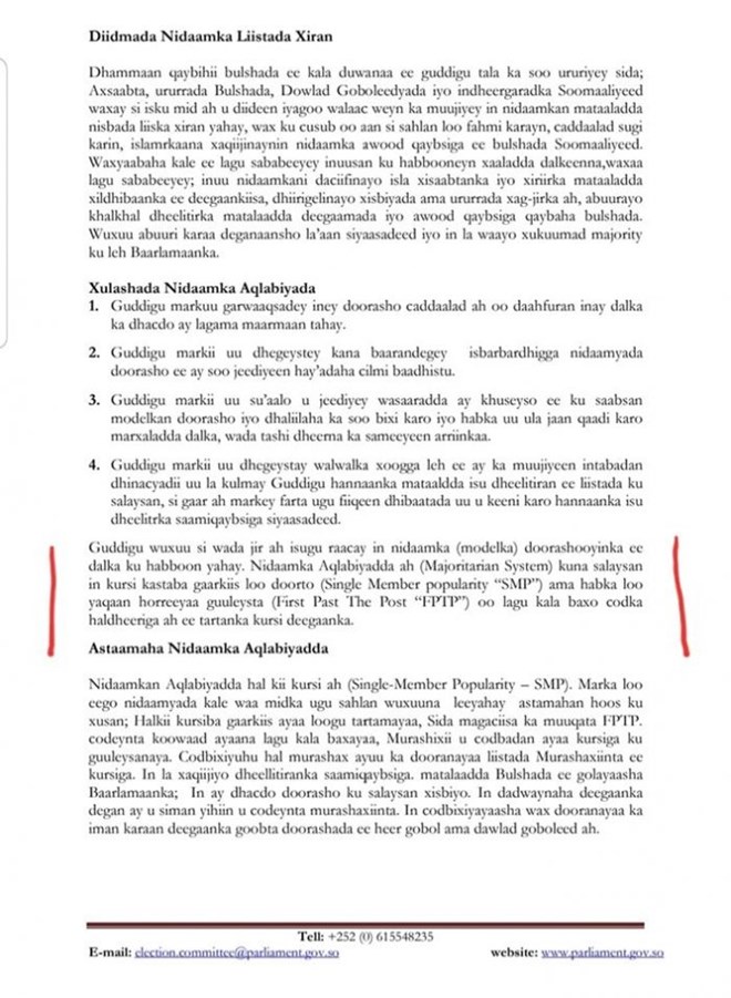 newsinsideWaxaa dhawaan sharciga diyaarintiisa soo gabagabeeyay Guddiga KMG ah ee sharciga doorashooyinka,guddigaas oo ka koobnaa 15 Xubnood oo laga soo xulay xildhibaannada Golaha Shacabka.