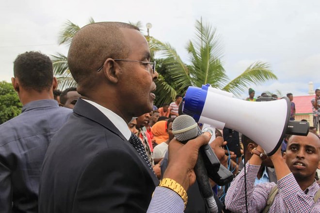 Sabti, Abril 25, 2020 (HOL) - Guddoomiyaha Gobolka Banaadir ahna duqa Caasimadda Cumar Maxamed Maxamuud (Cumar Filish) ayaa waxa uu maanta kula hadlay Magaalada Muqdisho boqollaal dibad-baxayaal ah oo kasoo horjeeday fal dil ah oo uu xalay ka geystay askari ka tirsan Ciidamada Booliska Soomaaliya Isgoyska Jubba ee Degmada Boondheere.