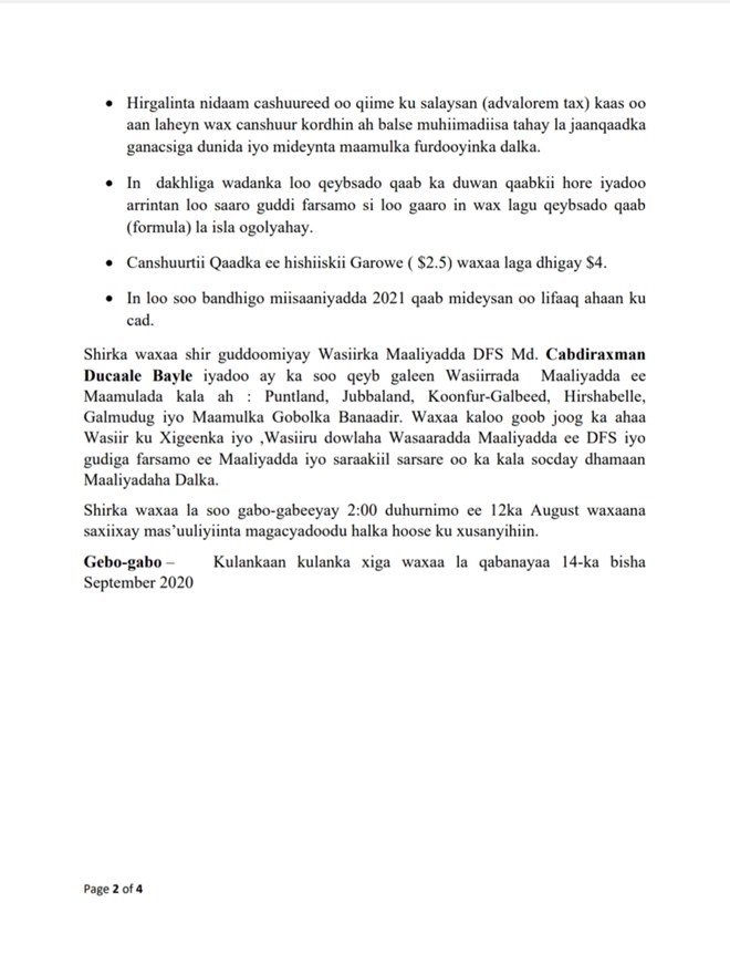 newsinsideShirkan oo bile ah ayaa markan lagu soo bandhigay is beddelo cusub, oo ay ugu horreeyo nidaamka canshuuraha oo wax laga beddelayo, hab-qabsiga dhaqaalaha oo wax laga beddelayo iyo canshuur dheerad ah oo la saarayo Qaadka.