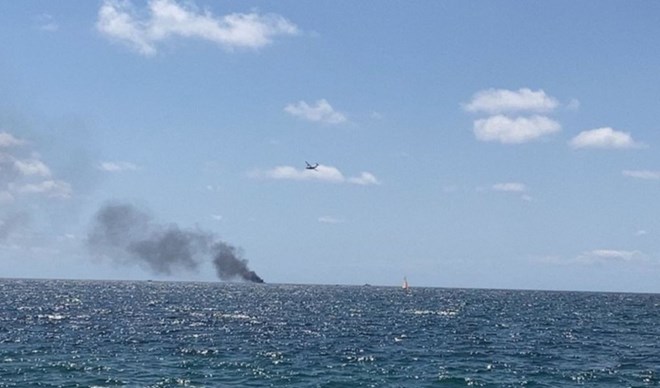 Laba sarkaal oo ka tirsan bilayska ayaa dhaawacmay markii ay isku dayeen inay ka xeeyaan doonta gubatay si ay u badbaadaan, taliyaha bilayska Emilio Fiora ayaa laga soo xigtay oo la hadlay wakaaladda wararka ee AdnKronos.
