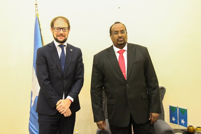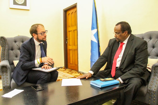 Sabti, Agoosto 8, 2020 (HOL) - Madaxweynaha Hirshabelle Maxamed Cabdi Waare ayaa Magaalada Muqdisho kula Kulmay Safiirku xigeenka Talyaaniga ee Soomaaliya ambassador Tabio Massimo waxaana ay ka wada hadleen wax ka qabashada arrimaha Fatahaada Beledweyne.
