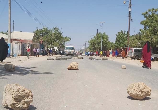Dibadbaxaayasha ayaa hakad galiyay isku socodka gaadiidka, iyagoo taayaro iyo dhagaxaan ku jaray wadada laamiga weyn ee bartamaha Gaalkacyo.