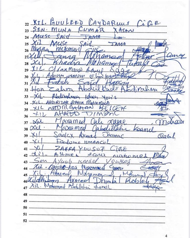Arbaco, December, 02, 2020 (HOL) - 47 Xildhibaan oo ka kala tirsan barlamaanka labadiisa aqal kana soo jeeda gobolada waqooyi, ayaa sheegay guddoomiyaha aqalka sare in aanu ku mutalin mowqifkiisa diidmo ee Guddiyada doorashooyinka dadban.
