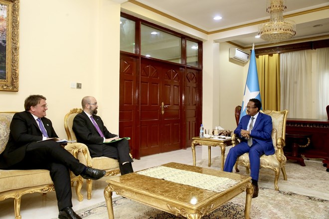 Madaxweyne Farmaajo oo xafiiskiisa ku qaabilay Wasiirka Africa ee UK