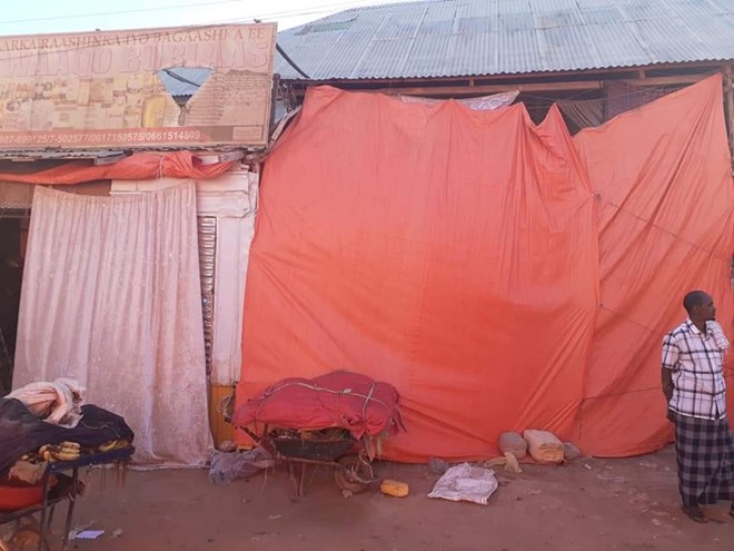 Sawirro lagasoo qaaday suuqa bartamaha Gaalkacyo, ayaa muujinaya xarumihii ganacsiga oo albaabada iskugu laaban yihiin, waxayna arrintaan sameyn ku yeelatay bulshada.