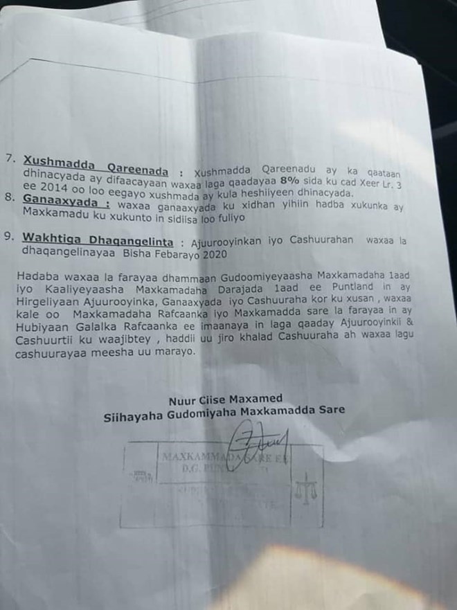 Halkaan ka akhriso warqadii guddoomiyaha maxkamada.