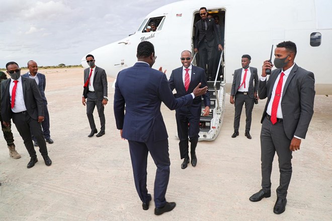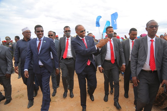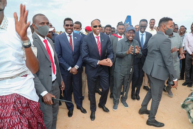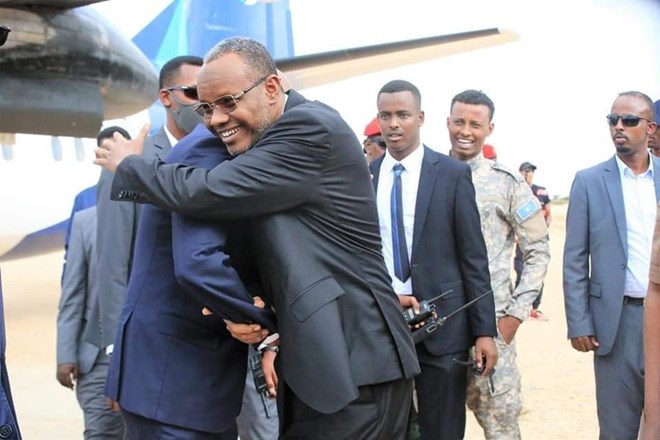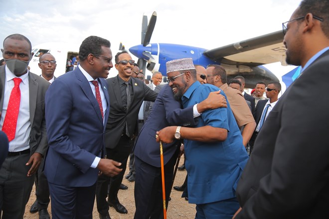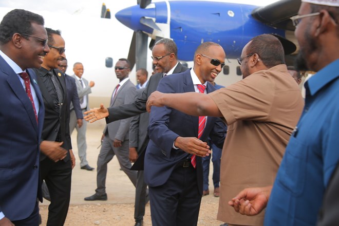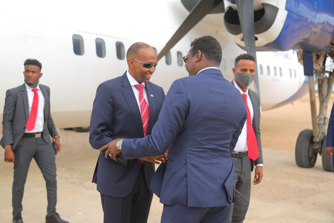 Talaado, Luulyo 14, 2020 (HOL) - Ra'iisul Wasaaraha Soomaaliya Xasan Cali Kheyre iyo wafdi uu hoggaaminayay ayaa gaaray magaalada Dhuusamareeb, iyadoo si wadajir ah ay garoonka diyaaradaha ugu soo dhoweeyeen Madaxweynayaasha maamul-goboleedyada.