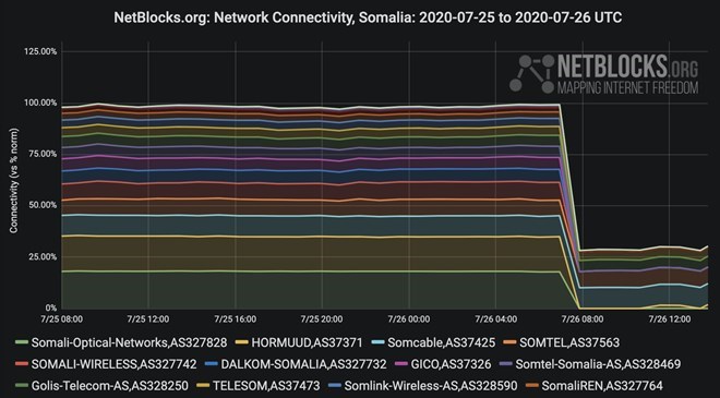 Si kastaba ha ahaatee, kooxdan u ololeeya arrimaha internetka ee Netblocks ayaa sheegay in xogtooda ay muujineyso in tani ay tahay mid aan horay uga dhicin Soomaaliya, gaar ahaan muddooyinkan dambe.