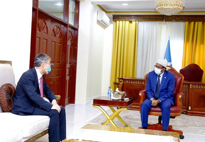 Isniin, July 6, 2020 (HOL) - Madaxweynaha Soomaaliya Maxamed Cabdulaahi Farmaajo oo wadahadal la yeeshay safiirka Shiinaha ee Soomaaliya Qin Jian, ayaa diiradda saaray ixtiraamka madax-bannaanida iyo dowladnimada labada dal.