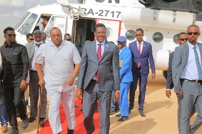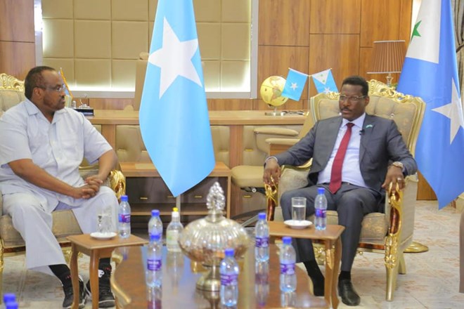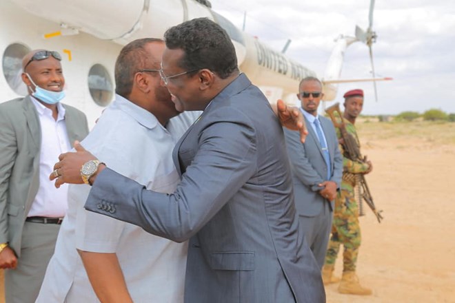 Arbaco, July 8, 2020 (HOL) - Madaxweynaha Maamulka Galmudug Axmed Cabdi Kaariye ayaa waxa uu magaalada Dhuusamareeb kusoo dhoweeyay goor dhow madaxweynaha Maamulka Hirshabeelle Maxamed Cabdi Waare.