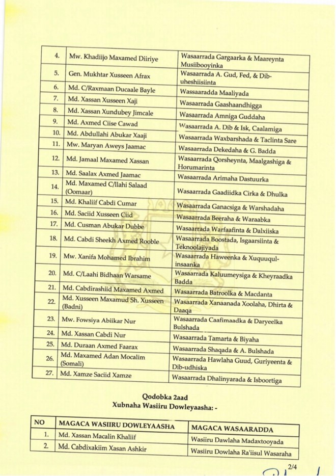 Halkaan hoose ka akhriso liiska wasiiradda.