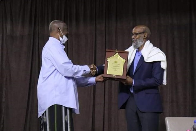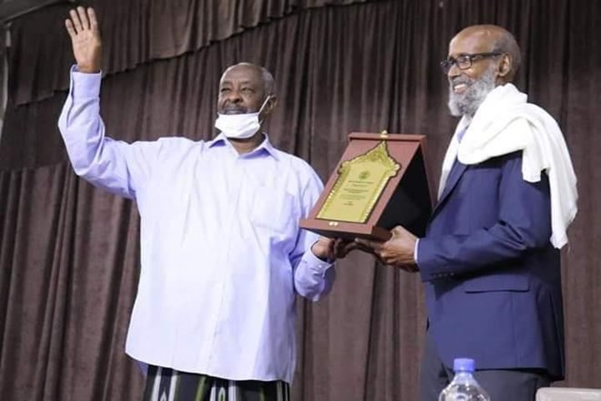 Arbaco, October 21, 2020 (HOL) - Wasiirka arrimaha gudaha ee Somaliland Maxamed Kaahin ayaa guddoonsiiyey Duuliye Axmed Maxamed Xasan (Axmed Dheere) bilad sharaf loogu abaal gudayo kaalintii uu ka qaatay badbaadinta shacabka reer Hargeysa, mudadii ay colladda u dhexesay SNM iyo xukunkii siyaad Barre.