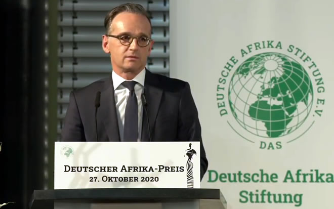 Arbaco, October, 28, 2020 (HOL)-Wasiirka Wasaarradda Arrimaha Dibadda dalka Jarmalka Heiko Maas ayaa guddoonsiiyay abaalmarinta Africa Prize ee sanadkiiba mar Jarmalku bixiyo Ilwad Elman oo ah gabar Soomaali dhalinyarro ah oo u dhaqdhaqaaqda Arrimaha bulshada.